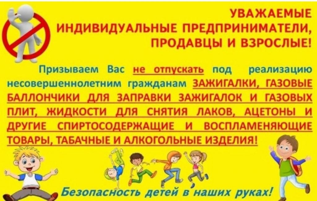 Призываем Вас не реализовать и не продавать детскому населению следующие опасные вещества и предметы:❌ЗАЖИГАЛКИ;❌ГАЗОВЫЕ БАЛЛОНЧИКИ;❌ЖИДКОСТИ ДЛЯ СНЯТИЯ ЛАКОВ;❌ЛАКИ ДЛЯ ВОЛОС;❌АЦЕТОНЫ И РАСТВОРИТЕЛИ;❌ЛАКОКРАСОЧНЫЕ МАТЕРИАЛЫ;❌СПИРТОСОДЕРЖАЩИЕ И ВОСПЛАМЕНЯЮЩИЕСЯ ИЗДЕЛИЯ;❌ТАБАЧНЫЕ ИЗДЕЛИЯ;❌ЭЛЕКТРОННЫЕ СИГАРЕТЫ;❌ВЕЙПЫ;❌АЛКОГОЛЬНЫЕ ИЗДЕЛИЯ и другие запрещённые вещества! Вышеуказанные вещества опасны для детского здоровья и смертельно опасны! Берегите детей, их безопасность в наших руках!